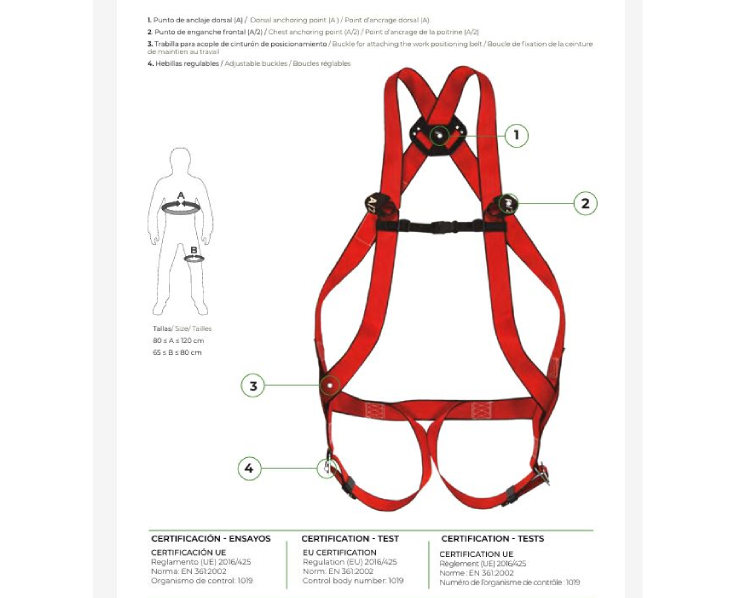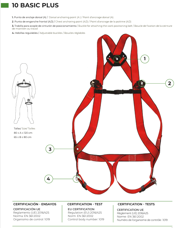 – El arnés 10 Básico Plus tiene un peso máximo permitido por usuario: 100kg
